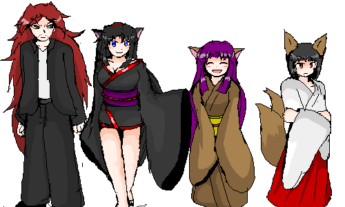 このやろー、キャラまで指定しやがって(爆) ■マイキャラバトン 1.貴方の中で最愛のマイキャラを教えてください。性別と年齢、身長などデータなどもどうぞ。(複数人可。画像LINKなどあればソレも強力に推奨。) あまり身長や体重は公式には設定してないんですが、それはオリキャラ全員に当てはまることなので大して問題はなく(笑) ていうかさ、ほとんど情報サイトの「登場人物紹介」に描いてるんだけど(汗) 身長が何センチというのは設定してないんですが それぞれが大体これくらいの身長差だろう、という設定はあります。 それを図にしたのがこれ。 右から順に紹介していきますね。 まず、妹が指定した「朝狐」 これで「ともこ」と呼びます。え?分かりにくい?知るか(爆)(以下①) そして「鈴音」。 私がお気に入りなのではなく、私の知り合いの中で一番人気がある、元友さんのオリキャラ。(以下②) そんで、私のお気に入り「夜深」。私の趣味に走りまくりなキャラ(笑) これで「やみ」と呼びます。(以下③) そして、オリキャラを語る上で欠かすことが出来ないのが「ミッチー」。 リアルに居るミッチーは、このミッチーとは一切関係ない。というのは、既に本人から承諾済みですw(以下④) では、続きはりきっていってみよー |