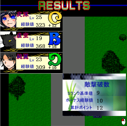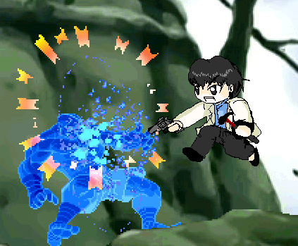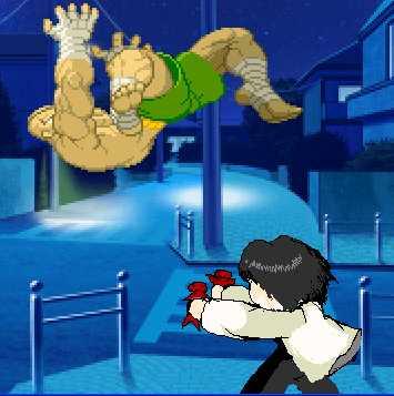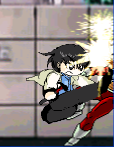 × [PR]上記の広告は3ヶ月以上新規記事投稿のないブログに表示されています。新しい記事を書く事で広告が消えます。 今回の更新内容。 ■フリーモードのやり込み版「チャレンジモード」追加 インターミッションでフリーモードを選択すると選ぶ事が出来ます。 これは、一度クリアしたステージを、もう一度プレイして経験値や資金を獲得する事が出来るモードです 各ステージには、それぞれ特別目標が設けられており、これを一つクリアするごとに、特別資金が与えられます。 更に、1ステージ全ての特別目標を達成すると、ステージコンプリートとなり、「1レベルアップ」「攻撃力増加」等の生存キャラに対する特典を獲得する事が出来ます。 更に、そのステージ中で出来なかった隠し要素もちゃんと存在しているので(アイテムなどは別)Sランク獲得を狙っていて調べきれなかった場所などもゆっくり調べる事が出来ます。 最近、イラストがスランプ気味です。 イラストを楽しみにしてきている方には本当に申し訳ありません…w とりあえず、今回は、下の記事で紹介した宮田が使える「MUGEN」のことについて少し説明します。 下の記事を見て貰うと分かると思うのですが、MUGENというのは、色んなキャラを格闘ゲームのキャラとして登場させ、夢の対決をさせる事が出来るというすばらしいフリーソフトなのです。 しかも、そのキャラは自作する事が出来、自分のオリキャラであっても思うがままなのですよw とりあえず、お試しみたいな感じで、WINDOWSにある程度適応させたMUGEN本体を置いておきます。 今の状態では、カンフーマンと、宮田しか入っていません。 もし、キャラクターを増やしたい人とか、使い方が分かりにくいという要望があったら、追加で説明しますので、遠慮なくお申し付け下さいw ■■■■■■■■■MUGEN本体ダウンロード■■■■■■■■ 90%くらい完成したので公開します。 キャラデータダウンロード ★宇理炎解放【最小限威力】[↓→a] 宇理炎2個を使って、敵を吹っ飛ばします。 ガード不可な上に、敵を大きく浮き上がらせるので、そのあとに追撃しやすいです。 もう少し範囲を広めて、使うたびに微量に体力が減るようにしてみます サガットもこんな風に吹っ飛んでしまう程の威力 流石うりえんパワー(笑) ★宮田スランディング[空中で↓←a] 空中でムーンサルトをかました後に、相手に向かって跳び蹴りをくらわします。 あまりの摩擦に、燃えます、敵(笑) 浮き上がった敵に対してはムーンサルトが高確率で当たるので、宇理炎解放を決めた後に小ジャンプで敵に接近して攻撃するとかなり有効です。 決まると楽しいです ★38口径短銃[↓←a] リボルバーを6発前方に向かって高速連射します。 本当は、牧野になった時に手に入れるモノですが、まぁいいでしょう?(聞くな) 追撃途中でジャンプ&小キックするのがめんどくさい場合は使ってみると良いです。 何発か高確率で当たります(笑) ★38口径短銃【空中】[空中で↓→a] うあ、しまった。これって一番手抜きしたアニメーションの絵だ(笑) 空中で同じように5発リボルバーを高速発射します ただ、これは攻撃範囲が結構でかい上に、ダウンしている敵にも容赦なく当たります。 鬼です(笑) ★かかと落とし[空中で↓a] まんまです。相手にかかとを落とします。 空中にいる敵にも、立っている敵にも、ダウンしている敵にも有効な万能技。 宮田の操作に慣れるまでは、技と技の繋ぎはこれでやるといいです 落ちる距離が長ければ長いほどダメージは高くなります ★うりえんフラッシュ[↓→↓→a(1ゲージ消費)] 勇気りんりん!うりえんパワー! 画面の隅に追いやった状態で使用すると敵をハメれます。 運が良ければ、それによってコンボとしても繋げられるので、狙ってみる価値はあるでしょう ★「さよなら、兄さん」[→←↓→(a+b同時押し)(全ゲージ消費)] 究極必殺技。 ダメージがとてつもなくえげつないです ガードしても、空中にいても、大ダメージ必須。 ただ、弾の弾速が遅いので、敵がジャンプしていると当たる可能性が低いです 確実に当てたい時は、密着した状態で使用してください